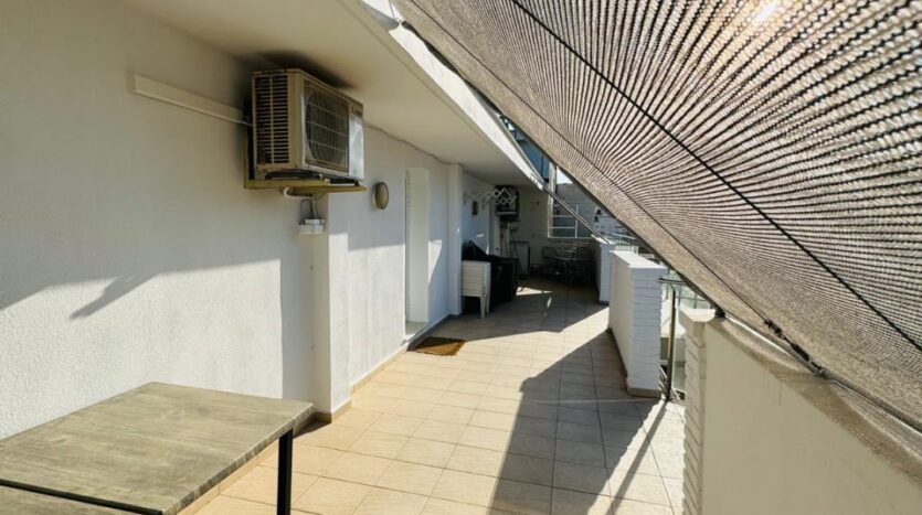 This completely renovated and modern penthouse boasts a spectacular 120 m² private terrace with 180º panoramic sea views. Imagine enjoying your morning with a cup of coffee, watching the sunrise over the crystal-clear water. Three spacious bedrooms and two bathrooms provide ample space for the whole family or for entertaining. Built-in wardrobes and a storage area provide all the storage you need.